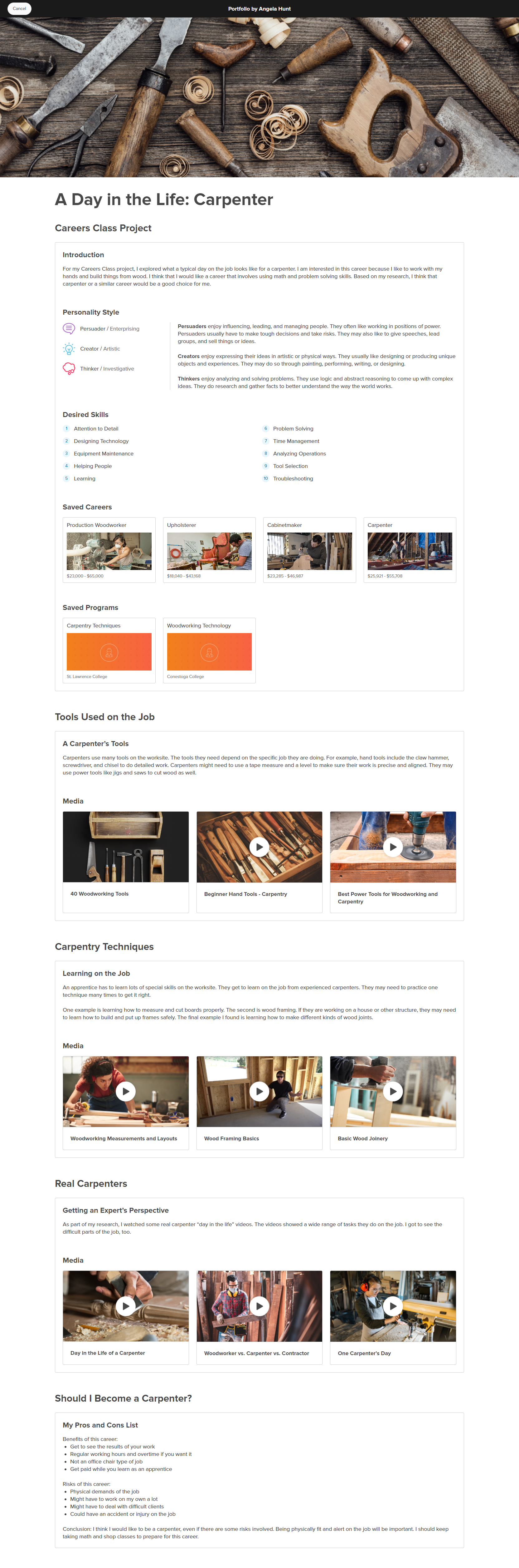 This is where they can watch the short video on the previous page of this module. From this page they can also browse a library of example portfolios to help spark ideas and inspiration. There are range of different kinds of portfolios, including an example school project, portfolios based on career skills, ones for college or university applications, creative work, and more.