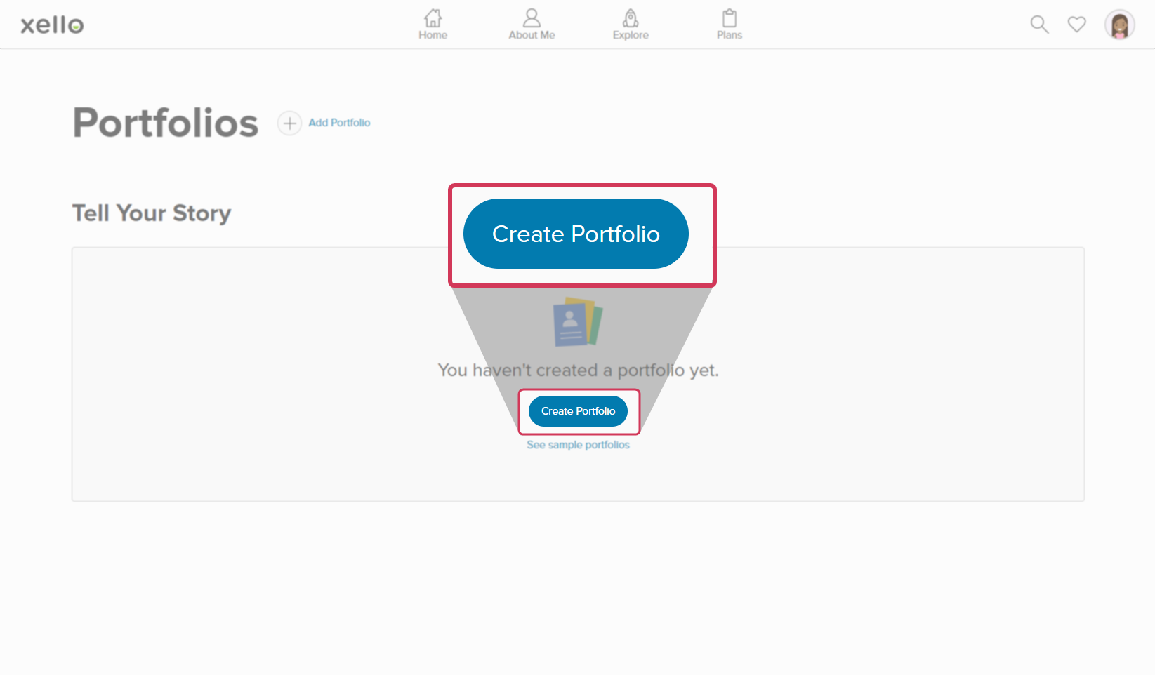 But it's okay if they're not sure where to begin yet! Getting started with creating a portfolio can be an overwhelming and daunting task. If they're looking for some ideas, or they'd like some examples before they really begin, they can click See sample portfolios.