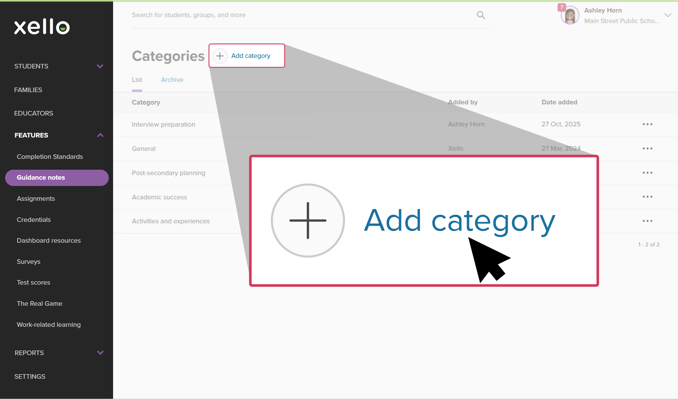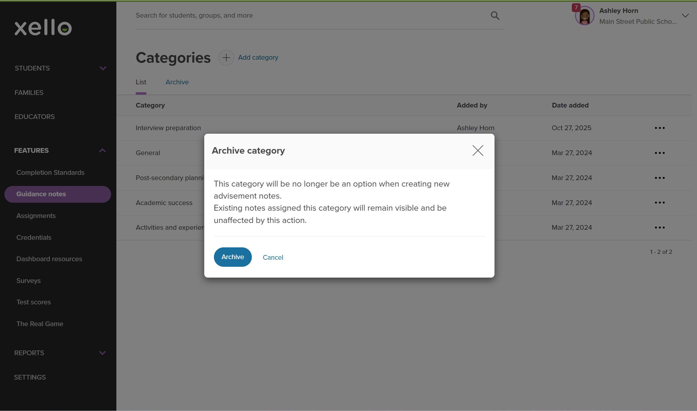 FYI: A banner will indicate if you're nearing or have exceeded the limit of 10 active categories. To add a new one, archive an existing category.