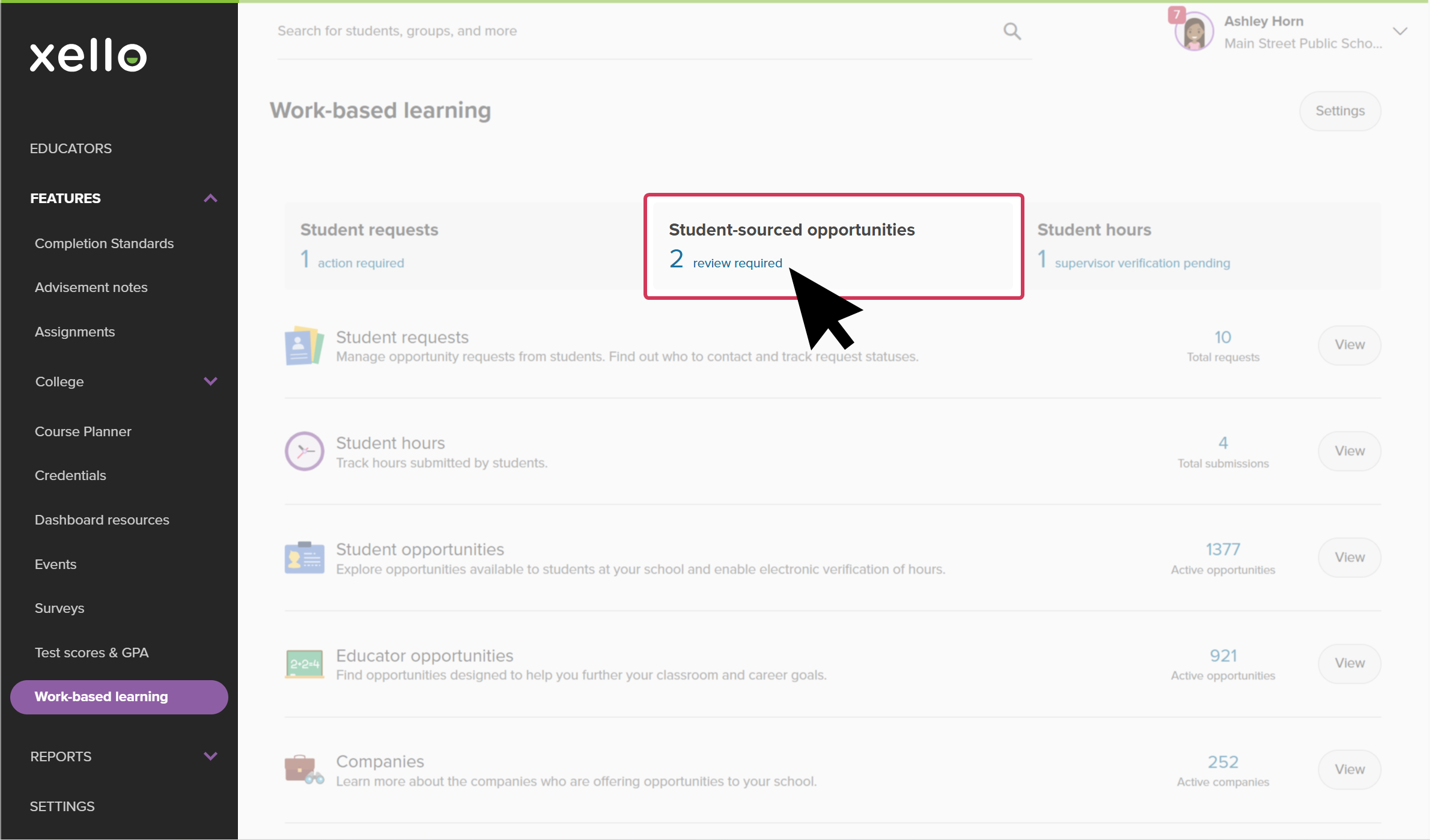 You can view student Work-related learning (WRL) opportunities in your Xello educator account. Check in on your students' WRL requests while you're already in Xello managing other student work.