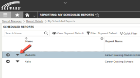 - To the left of the report name, click the down arrow and select Run Report Now.