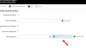 - Next to File Destination, click Add FTP/SFTP Connection.